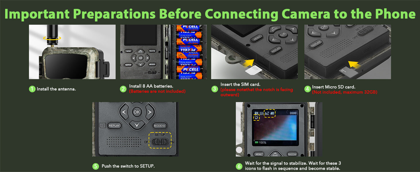 5) Die Mobilfunk-Wildkamera unterstützt eine MICRO-SD-Karte mit maximal 32 GB .