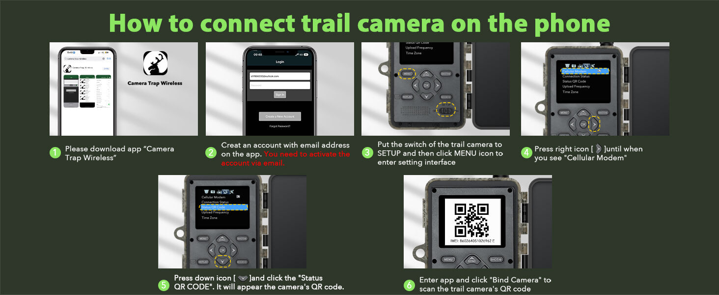 Die Wildkamera TC20 unterstützt den Fernzugriff und die Einrichtung per Telefon mit der kostenlosen App „Camera Trap Wireless“. Sie können jederzeit und überall auf die Wildkamera zugreifen, um jederzeit die neuesten Videos und Fotos der Aufnahmen Ihrer Wildkamera zu erhalten.
