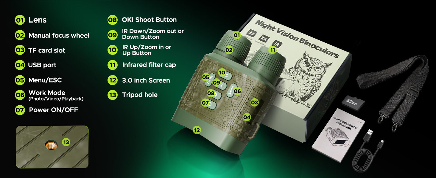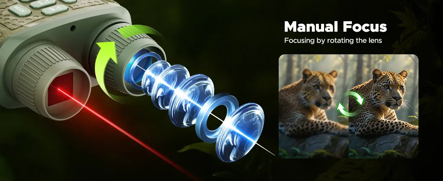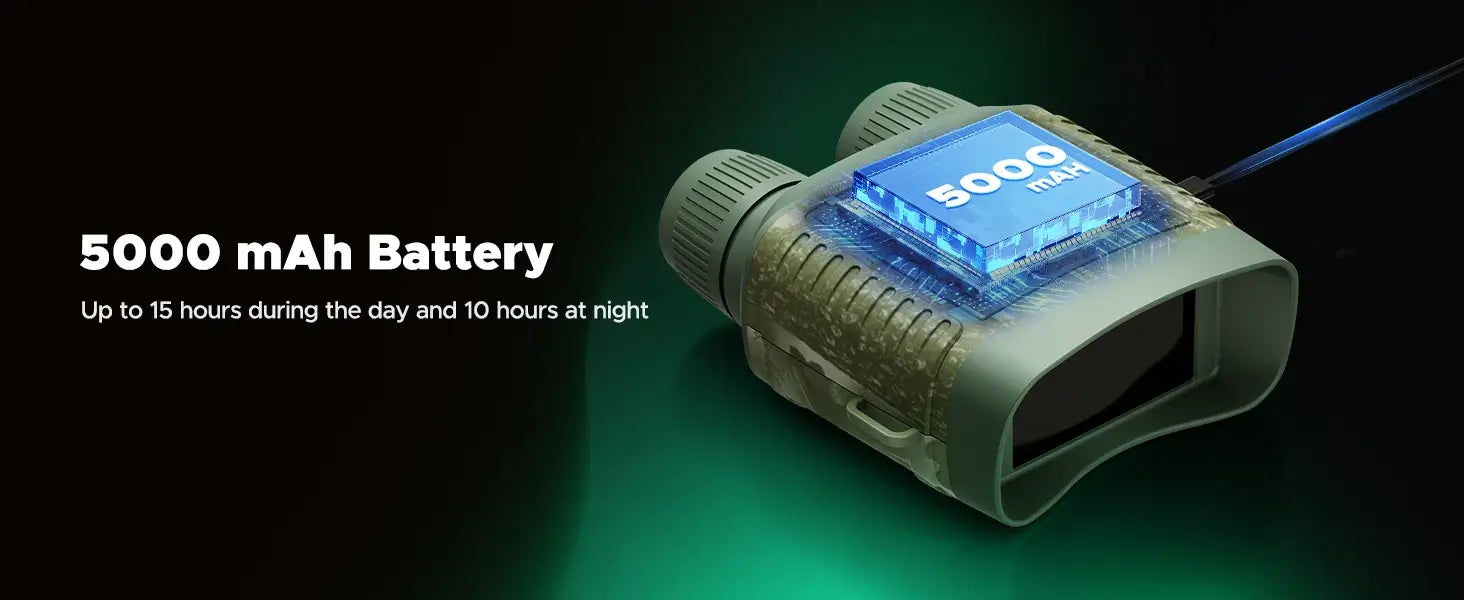 Equipped with a high-capacity 5000mAh rechargeable battery, delivering up to 16 hours of daytime use and 10 hours in night vision mode