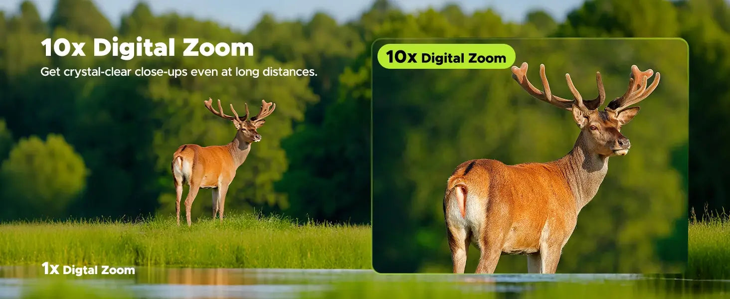 Featuring a powerful 10X digital zoom to spot targets up to 1000ft away in razor-sharp 4K resolution