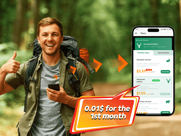 Stay connected without spending a fortune! Choose flexible data plans starting at just $3.59 /month or $35.99 /year. New users get a special first-month deal: $0.01 for 1000+ images. Plus, enjoy lifelong free cloud storage from the moment you activate it—no hidden costs. Never worry about losing your hunting or security footage again