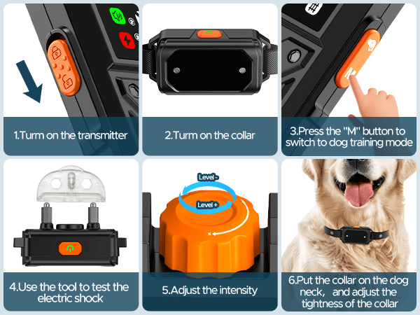 6.Put the collar on the dog neck, and adjust the tightness of the collar.