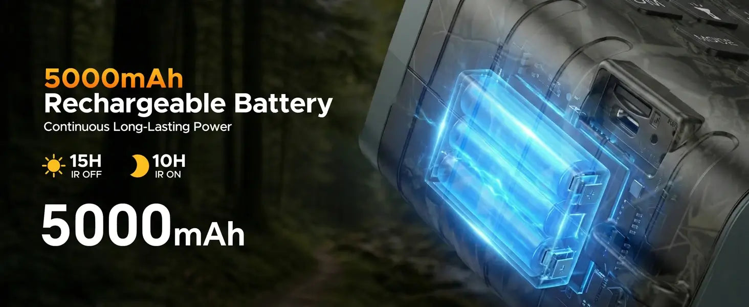 With a powerful 5000mAh built-in battery that keeps going for 10+ hours, you’re free to stay out from dusk till dawn. No hunting for an outlet, no range anxiety—just pure, uninterrupted performance for overnight expeditions, long surveillance ops, or back-to-back nights in the field.