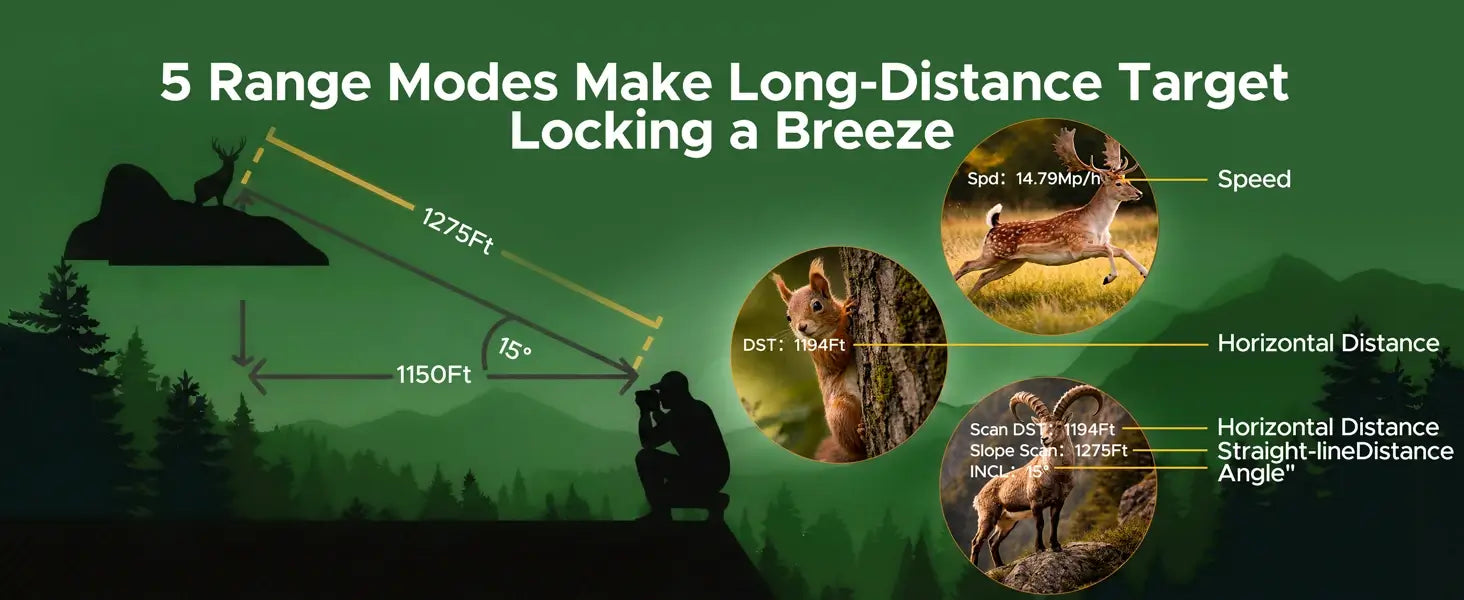 Switch seamlessly between five advanced modes with a single button: instant single-distance measurement, 10-second continuous distance scanning, intelligent distance and angle calculation mode, continuous multi-target scanning, and real-time moving-target speed tracking. Designed to support precise observation and dynamic tracking in complex outdoor environments.