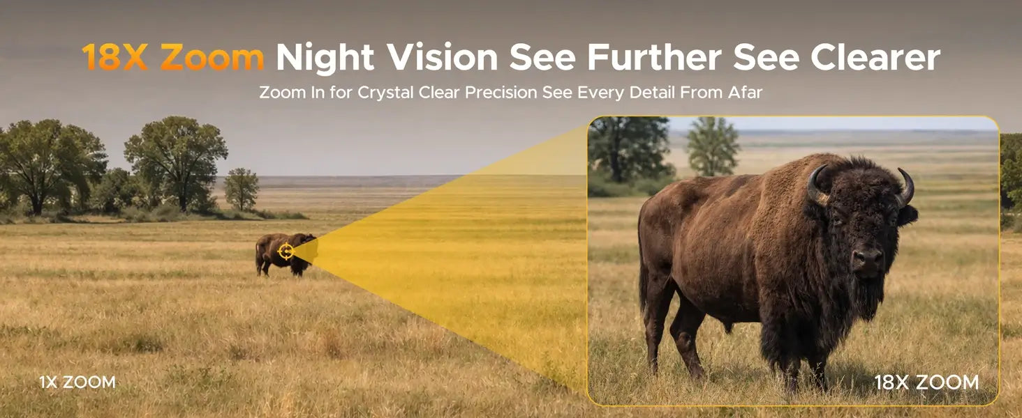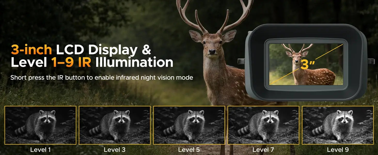 Get closer to the action without taking a single step. These night vision binoculars feature powerful 18X digital zoom and a massive 1200-yard observation range, so you can scan the horizon or zero in on distant details with ease. A high-output 3W infrared illuminator lets you dial in the perfect amount of light with 9 adjustable brightness levels, turning total darkness into a clear, high-contrast view—day or night.
