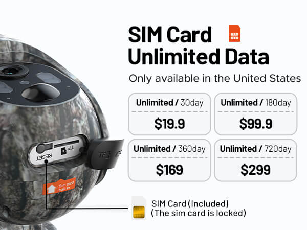 This cellular trail camera comes with a prepaid SIM card Built in to the Camera ,offering 300MB of trial data. You can start After the trial, you can renew data plans through UCon.