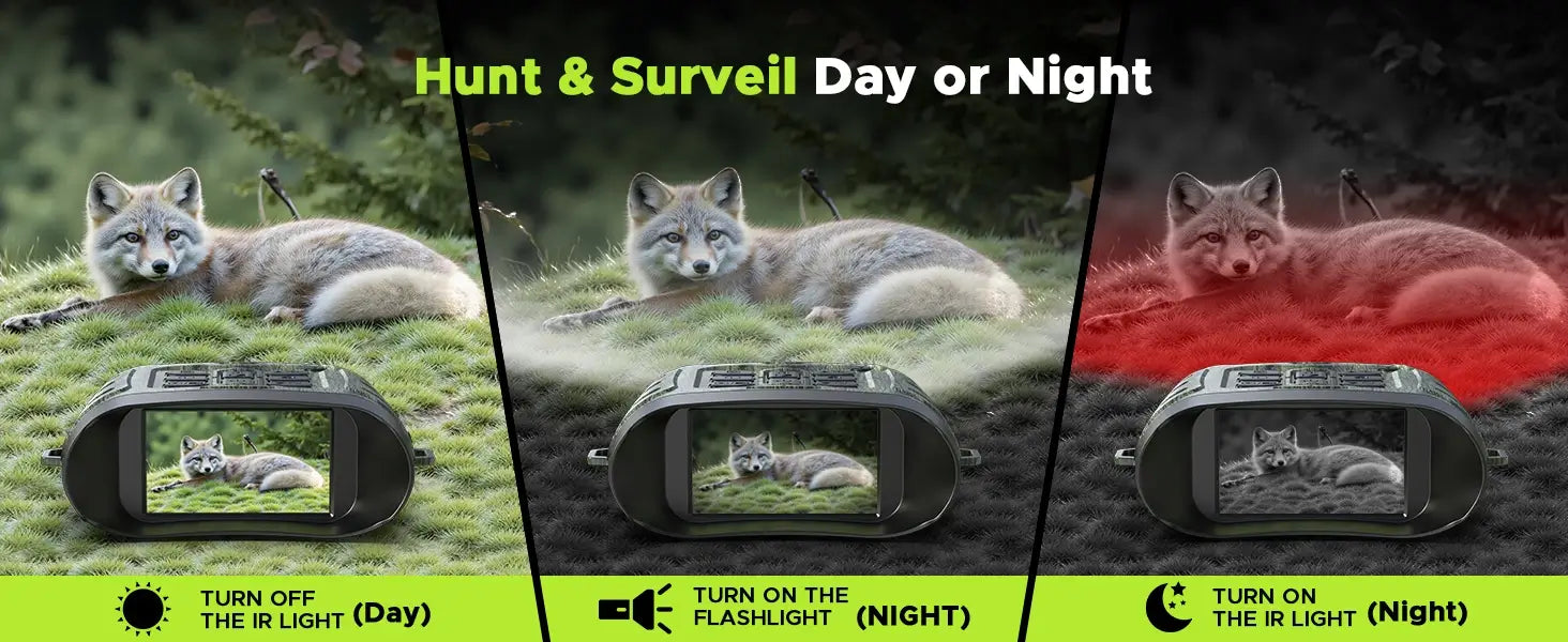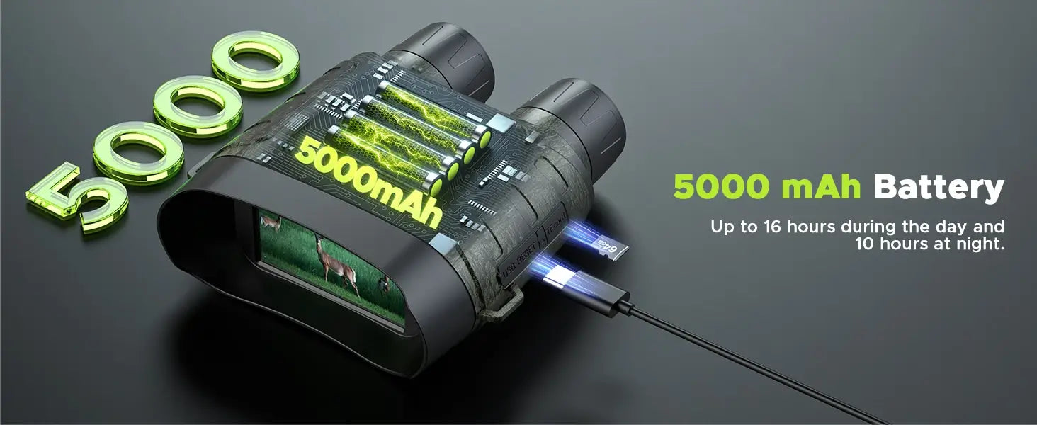 Say goodbye to battery anxiety! Our night vision goggles boast an exceptional battery life: up to 16 hours during the day and 10 hours at night. This impressive longevity means you can explore endlessly without interruption. Whether you're camping or monitoring wildlife, you can rely it to keep you powered throughout your adventures.