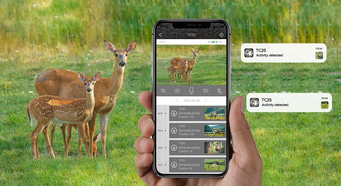 Support phone remote accessing, setting up, and controlling. Capturing motion from the PIR sensor, Records events and sends you notifications when the wildlife camera intrudes the detection zone.