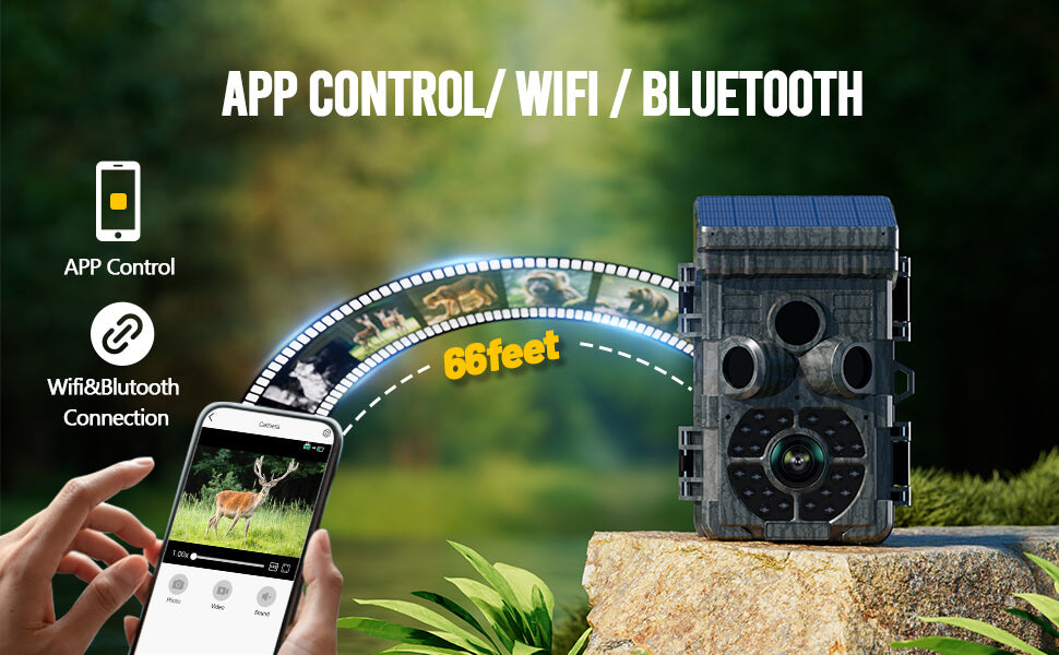 Download our app on your phone and connect it to the game camera, you can operate at a distance to send images from the camera to your phone within effective distance of 66FT, no need any extra USB cable